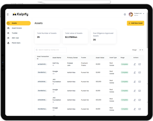 Whether you're looking to tokenize real estate, commodities, intellectual property, or collectibles, Kalpify offers an end-to-end solution that ensures regulatory compliance, enhanced liquidity, and global accessibility. Our platform is designed to simplify the complex process of asset tokenization, making it straightforward and user-friendly for both asset owners and investors.